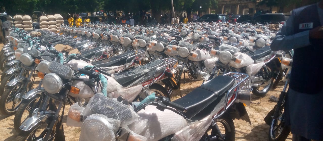 2000 bags of grains, 200 motorcycles, 210 Water Pumping machine and another 210 grinding machines which will be distributed to party loyalists, across the 7 local government areas of Sokoto South Senatorial District.